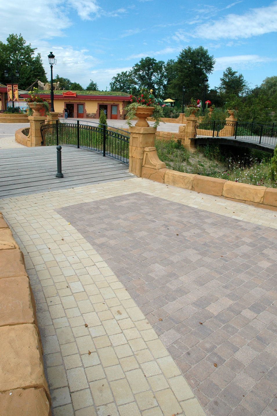 "Besonders wichtig war es uns", beschreibt Bernd Beitz, "dass die in diesem Zuge etwa 5.000 m² neu zu befestigenden Flächen, sich ebenso harmonisch in unsere Märchenwelten integrieren. Vor allem der neue großzügige Eingangsbereich und die breiten Wege des Parks werden maßgeblich durch die Art ihrer Oberflächen geprägt. Hier war es unser Ziel, einen geeigneten Pflasterbelag zu finden, der unsere Besucher gleich in die richtige Freizeitstimmung versetzt. Die Flächen sollten in jedem Fall farblich sehr kräftig erscheinen und von der Anmutung her natürlich wirken, damit sich leicht ein Bezug zu unseren Themenwelten aus der Tierwelt ergibt", so Beitz.